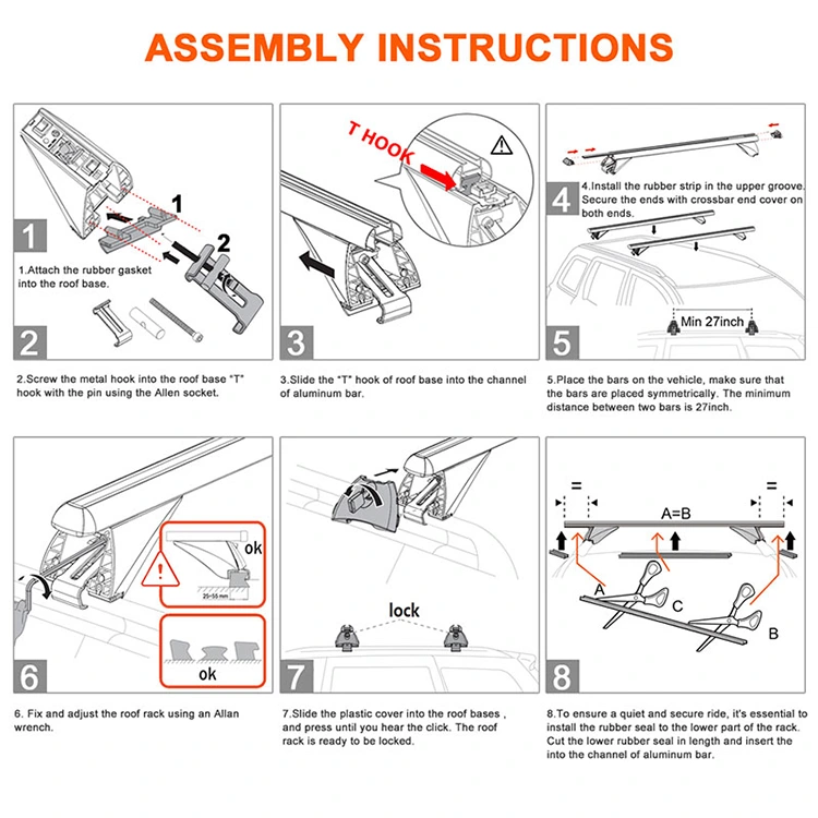 یہ چھت ریک کراس بارز آسان تنصیب ہیں: ہیکس رنچ 10 منٹ کے سیٹ اپ کے لئے شامل ہے۔ قدم بہ قدم عکاسی کے ساتھ دستی۔